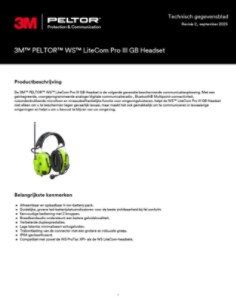 De 3M™ PELTOR™ WS™ LiteCom Pro III Headsets helpen u effectief te communiceren in lawaaiige omgevingen. Onze headset zijn uitgerust met een geïntegreerde analoge en digitaal tweewegradio voor onderlinge communicatie tussen headsets en kan worden geïntegreerd met vergelijkbare professionele radiosystemen. Ondersteunt tot 70 unieke programmeerbare radiokanalen. In complexe en veeleisende omgevingen veranderen geluidsniveaus voortdurend. Wanneer het omgevingsgeluid zachter wordt, kunt u de functie voor omgevingsgeluid harder zetten om het omgevingsbewustzijn te vergroten of te communiceren met mensen in uw omgeving. Zodra het omgevingsgeluid weer op een gevaarlijk niveau komt, schakelt de niveau-afhankelijke functie vanzelf in om uw gehoor te beschermen. De waterdichte microfoon met onderdrukking van omgevingslawaai kan handsfree worden bediend met spraakopdrachten en ondersteunt Bluetooth® Multipoint-connectiviteit voor naadloze verbinding met mobiele apparaten, zodat u kunt bellen zonder te stoppen met werken.